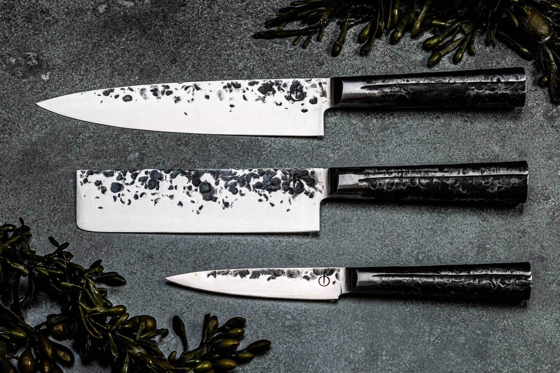 Das Forged Intense Messerset (3-teilig) kombiniert Kochmesser, Hackbeil und Universalmesser in einer Serie, die Kraft mit Eleganz verbindet. Die Klingen werden aus japanischem 440C-Stahl von Hand geschmiedet, sind ca. 2 mm stark, auf etwa 58 HRC gehärtet und besitzen eine dezent gehämmerte Oberfläche. Der polierte Kropf sorgt für eine ausgewogene Balance und ein angenehmes Handling, auch bei längeren Schneidearbeiten. Ob Fleisch, Gemüse oder Kräuter – mit diesem Set deckst du die wichtigsten Schneidaufgaben in Küche, BBQ-Bereich und Outdoor-Küche souverän ab. Geliefert in einer luxuriösen Holzbox ist das Intense Messerset ein hochwertiges Geschenk und ein stilvolles Werkzeug für Feinschmecker. Erhältlich bei Feuershop.de.