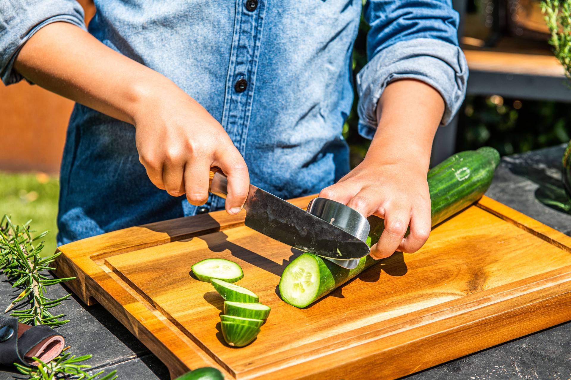 Das Olive Kinder-Kochmesser ist ein spezielles Kinder-Kochmesser-Set im Stil der Olive-Serie, konzipiert für junge Küchenhelfer. Die Klinge ist kürzer gehalten und wird in Kombination mit einem Fingerschutz verwendet, damit Kinder unter Aufsicht sicher schneiden üben können. Ideal, wenn du ein hochwertiges Kinder-Kochmesser aus der Forged-Serie Olive kaufen möchtest – perfekt für deine Küche, den Grill und deine Outdoor-Küche. Erhältlich bei Feuershop.de.