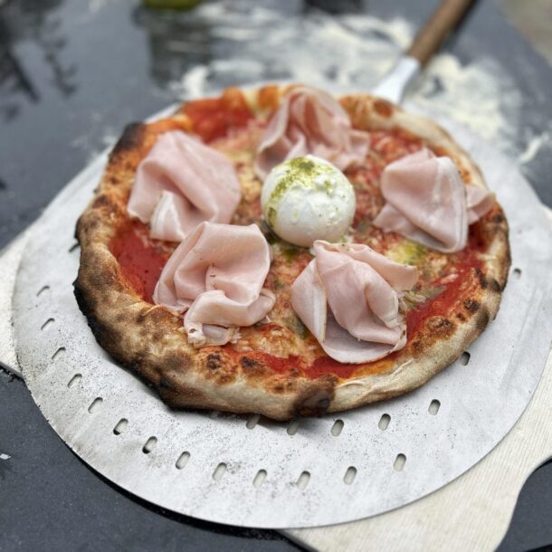 Unsere neue Pizzaschaufel macht dich zum absoluten Profi. Die 35 x 37 cm große Auflagefläche mit Perforierung erleichtert das Arbeiten und lässt überschüssiges Mehl, Grieß oder Semola von der Pizza herabrieseln. Die Perforierung sorgt außerdem für eine geringere Reibung, sodass die Pizza perfekt von der Schaufel gleitet. Diese einzigartige Pizzaschaufel besitzt im vorderen Bereich die notwendige Elastizität/Biegsamkeit zur leichten Aufnahme der Pizza und im hinteren Bereich eine Stabilisierung, so dass sie sich auch bei der Aufnahme von schwereren Köstlichkeiten aus deinem Merklinger nicht verbiegt. Robust und rostfrei, leicht zu reinigen