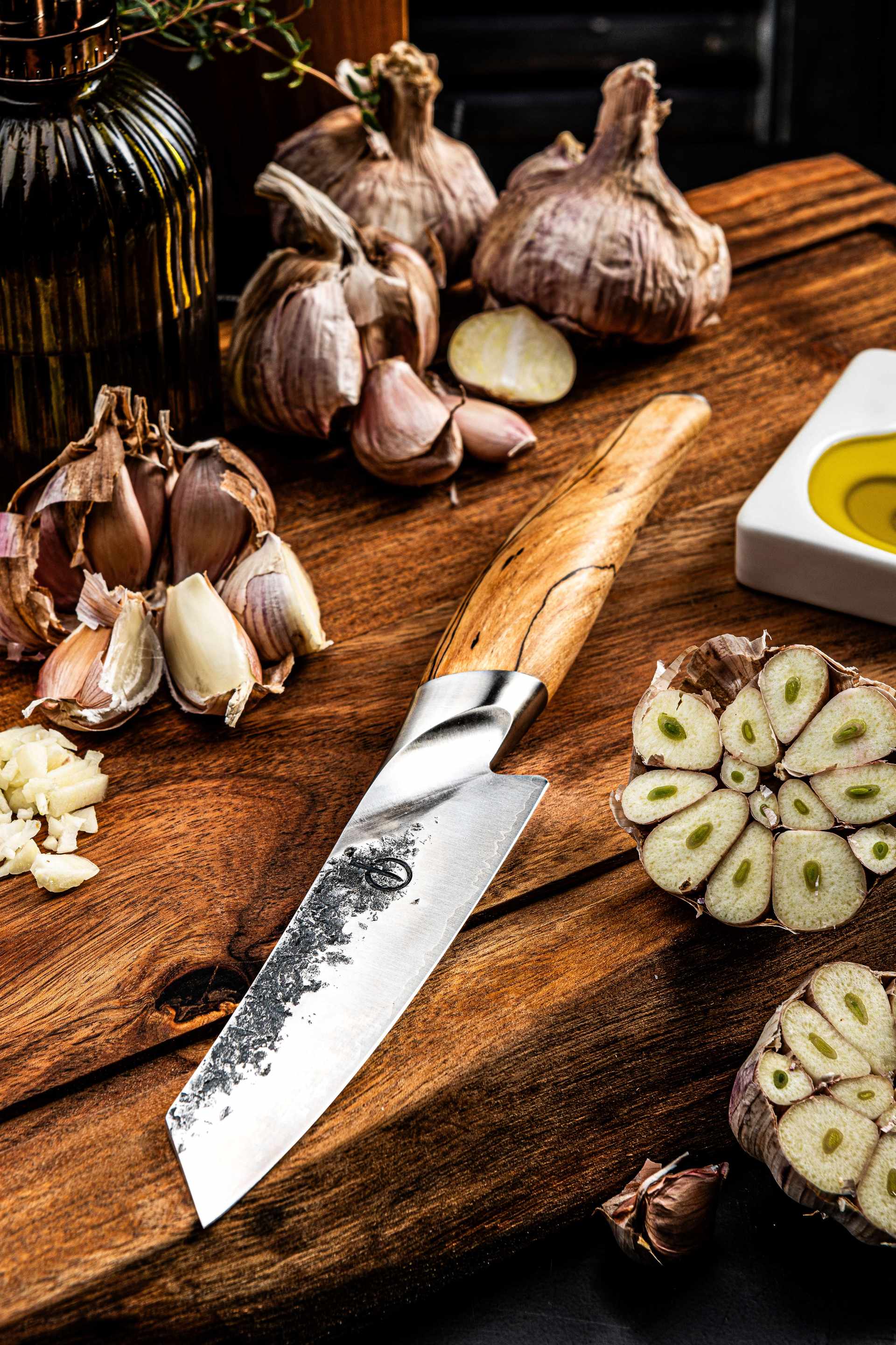 Das Katai Santoku 14 cm ist ein kompaktes Santoku nach japanischem Vorbild mit 14-cm-Klinge mit hoher Blattform im typischen Look der Katai-Serie. Gefertigt wird es aus fünflagigem japanischem VG10-Stahl (ca. 60 HRC) und mit organischer Linienführung, 5-lagigem VG10-Stahl und geformtem Wurzelholzgriff, geliefert in einer Holzbox und ausgelegt für den regelmäßigen Einsatz in der Küche. Ideal, wenn du ein hochwertiges Santoku 14 cm aus der Forged-Serie Katai kaufen möchtest – perfekt für deine Küche, den Grill und deine Outdoor-Küche. Erhältlich bei Feuershop.de.