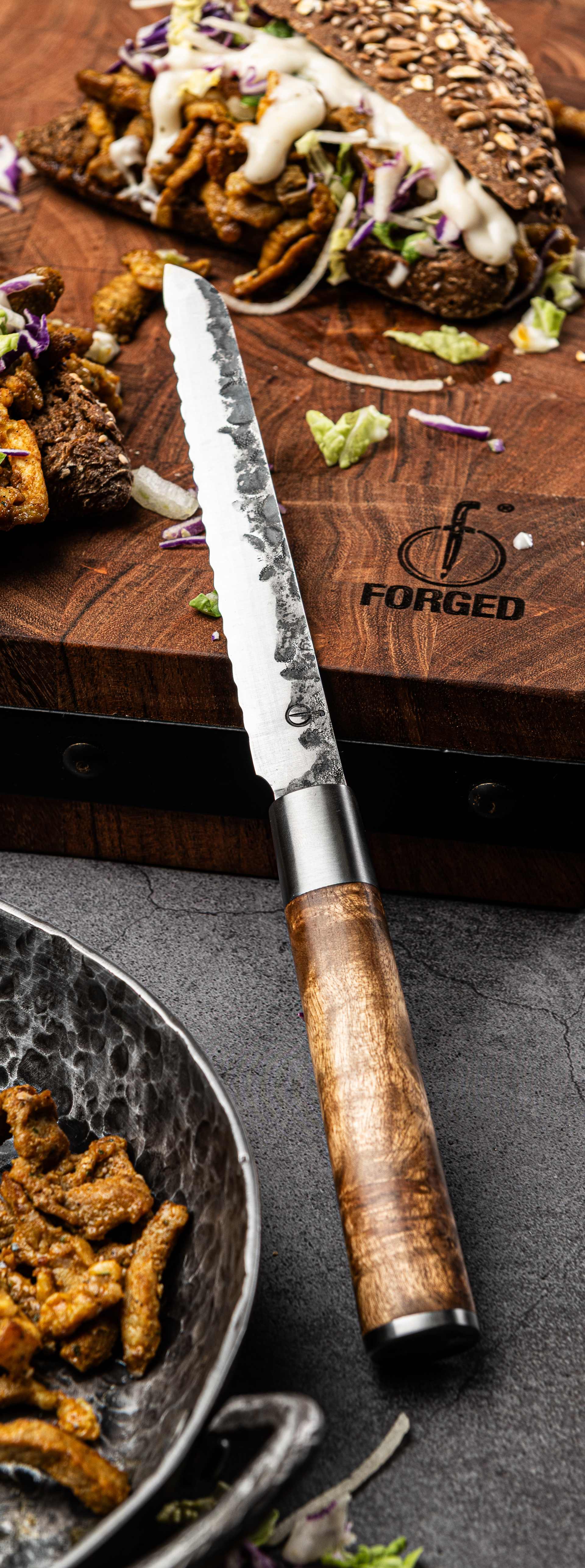 Forged VG10 Universalmesser gezahnt – Universalmesser mit Wellenschliff für Brot, Brötchen & Snacks